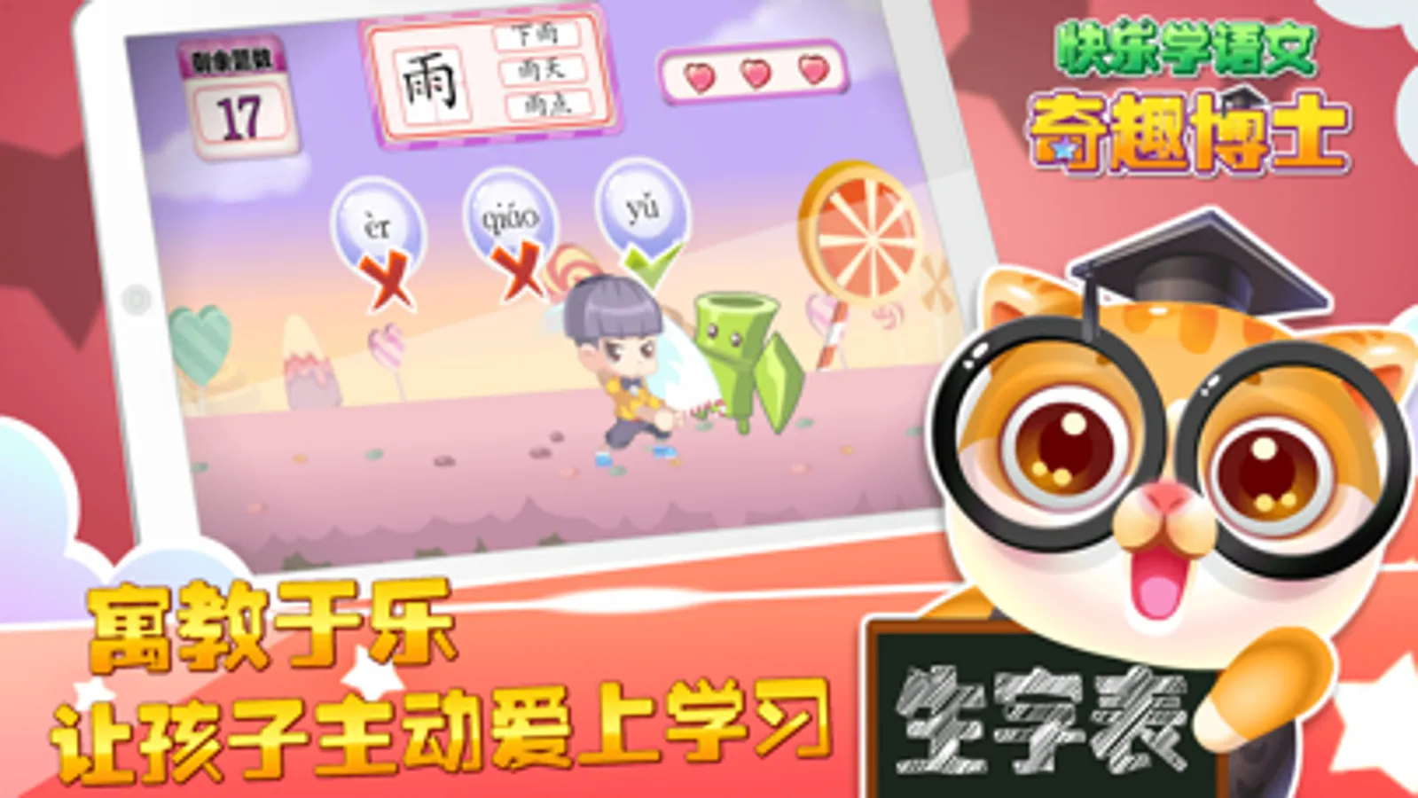 对于孩子来说学习的最大难点是无法集中注意力和缺乏自信心而失去兴趣,奇趣博士把汉字拼音学习巧妙的融入游戏,让孩子更专注与学习,并在挑战关卡中获得快乐与自信,让孩子更健康快乐的成长~