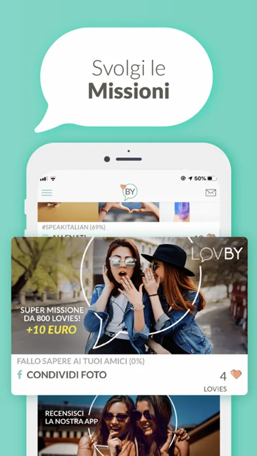 Ogni tua azione social corrisponde ad una missione da compiere per un brand. Una missione in LOVBY è quindi un like, un commento, una condivisione, un plus, un tweet,