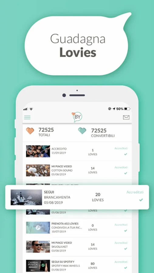 Ad ogni missione, i Lovies saranno corrisposti in funzione del tuo grado di influenza determinato dal social score.