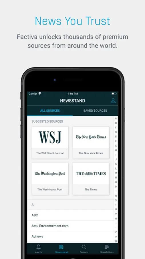 The Factiva iOS app, exclusive to Factiva subscribers, provides the information you need, whenever you need it. Stay up to date with access to thousands of premium content sources through custom alerts, newsletters, and newsstand. Search hundreds of thousands of companies to surface relevant news and data on the companies you care about.