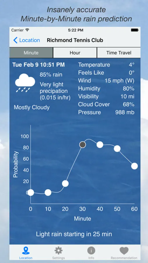 Have you ever combat traffic to get to your favorite sport activity only to arrive and it started to rain at that location? Have you ever waited in the clubhouse while the rain bucketed down and you wondered if you should run to your car or wait for the rain to end? Have you started drying out your tennis court and ended up in disappointment because it started to drizzle after it is almost dried up? If the answers are yes, then SportsWeather is for you.