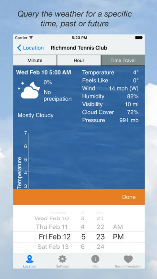 - The Time Travel view allows you to query the weather for a specific time, past or future. This can be useful if you want to know if it will rain tomorrow at 4:00 p.m. when you are about to leave for your soccer game.