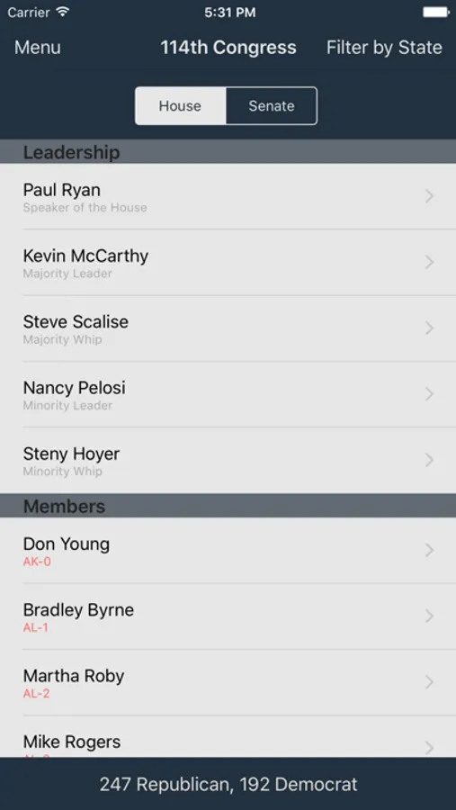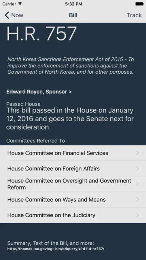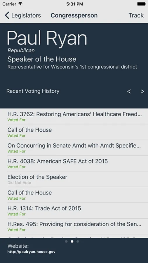 -Browse the legislators currently in Congress and view their position, sponsored bills, voting history, and more