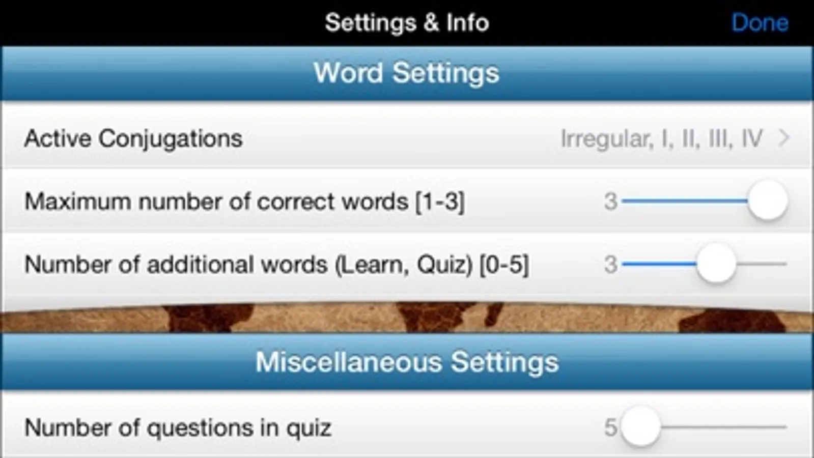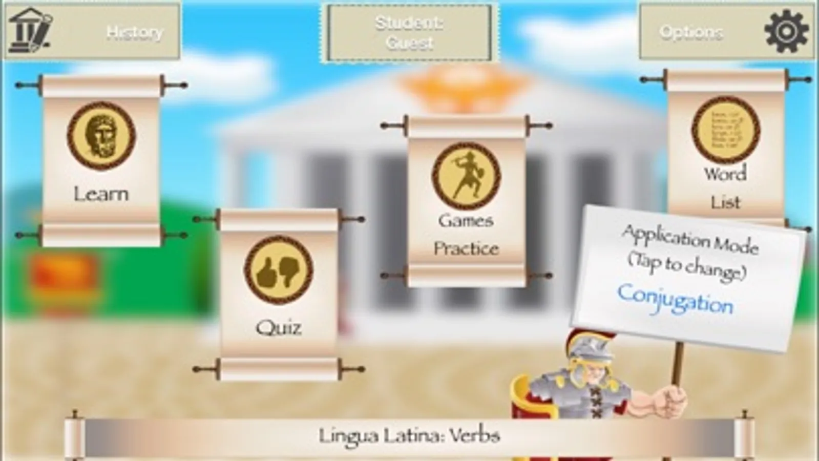 The app helps students learn Latin verbs (Learn Mode), practice them through 5 different games (Practice Mode), and finally to take the test and see how much they acquired (Quiz Mode).