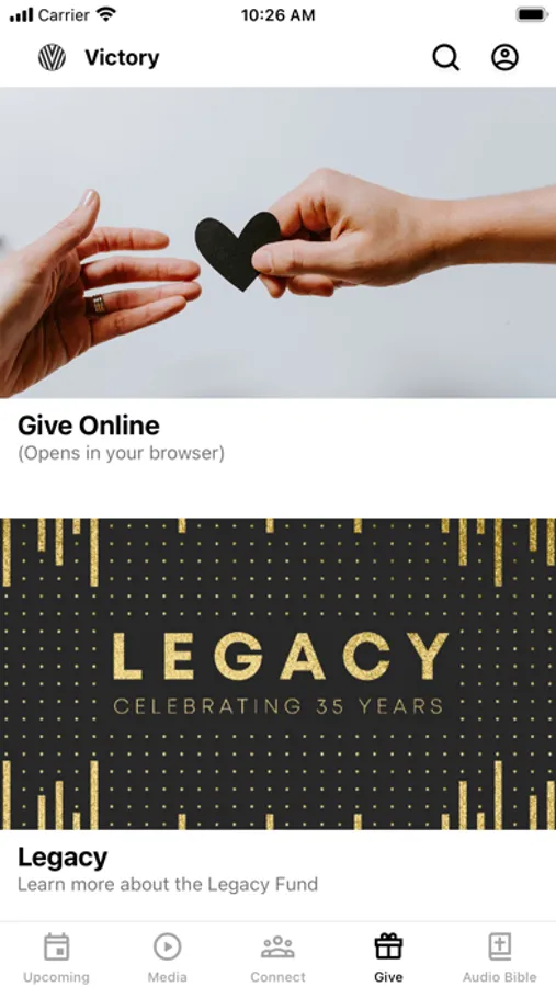 Connect and engage with our community through the Victory Faith app. Catch up on the latest messages, be in-the-know about upcoming events, give online, and more.