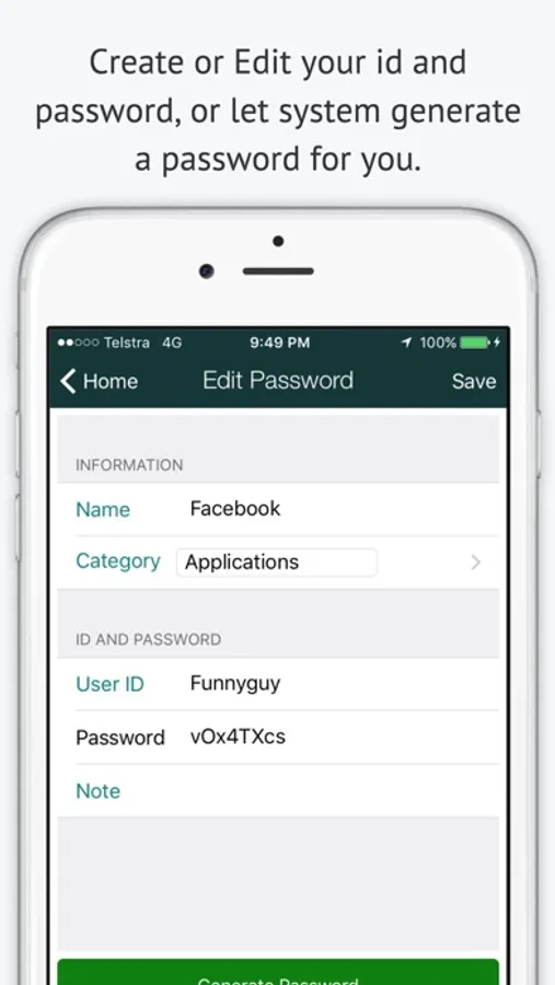 Another feature is to generate a secure password for you automatically if you running out of password idea.