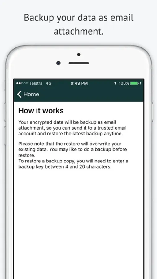 Your data is encrypted using very strong cryptographic algorithm available - AES 256 bit.The program access is protected by touchid or phone passcode.
