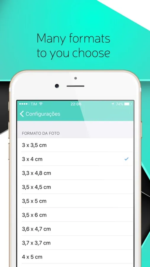 Take a picture to various types of documents (passport, ID, etc), between 3x4 and 5x7 main formats.