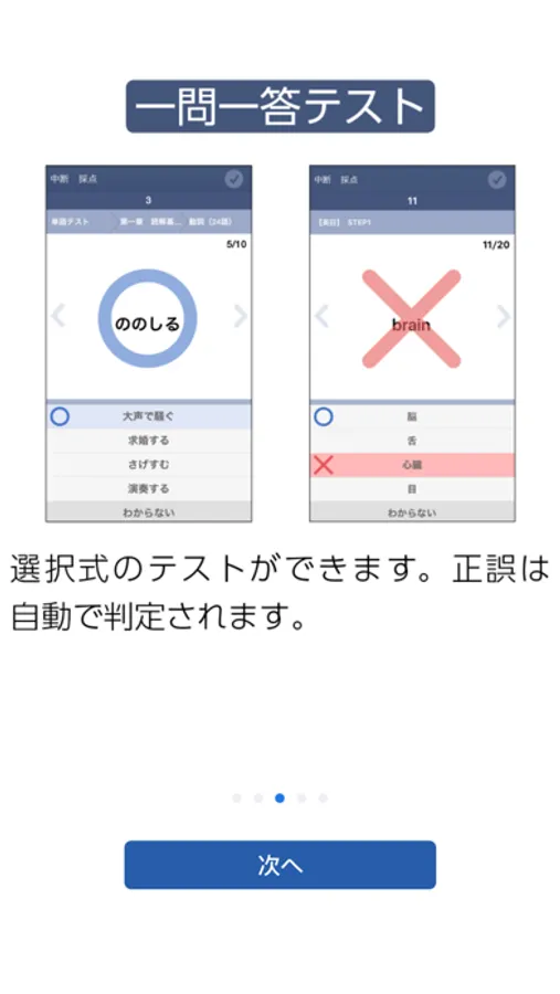 正解だった場合は「○解けた」,間違えた場合は「×間違えた」をタップします。