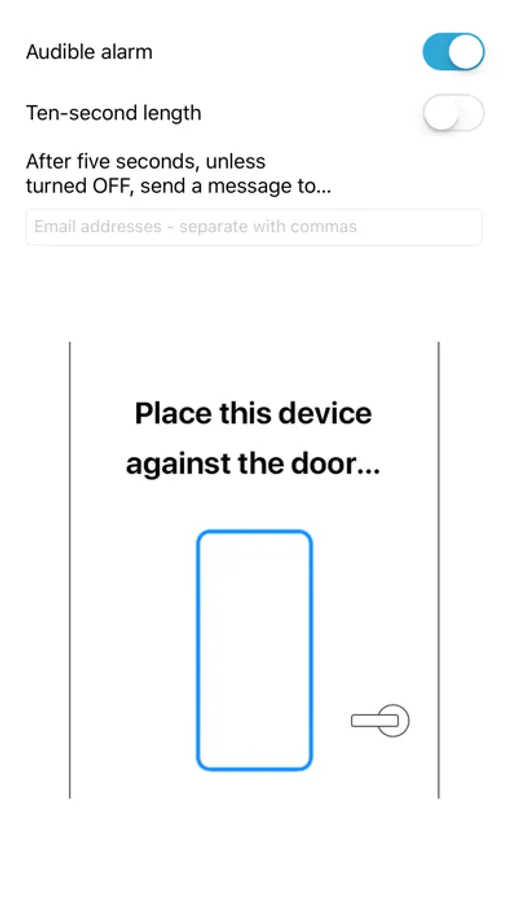 Just start the app, place the phone against the door, and it’s ready! Visit DoorAlertApp.com for more ideas and uses.