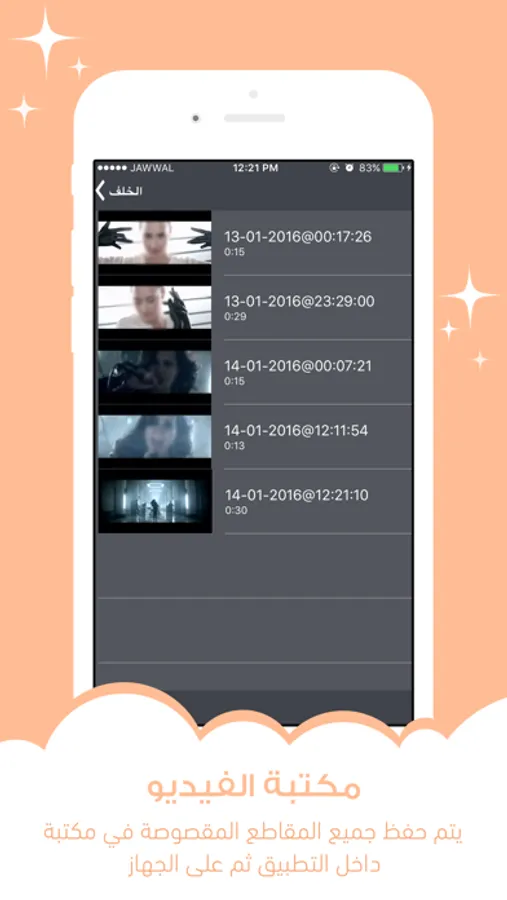 ٤- يتم حفظ جميع المقاطع المقصوصة في مكتبة خاص داخل الهاتف