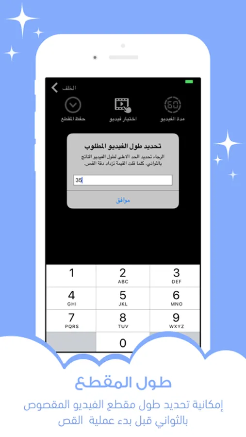 ١ - إمكانية تحديد طول الفيديو الناتج من عملية القص