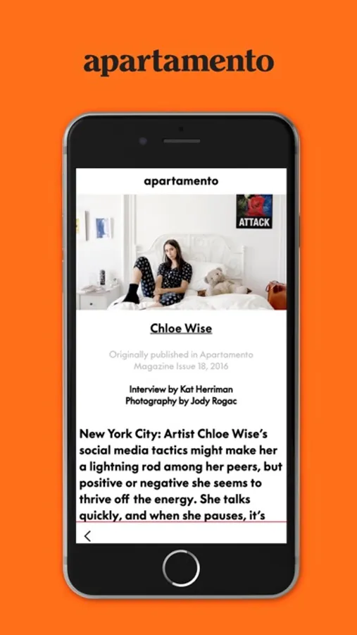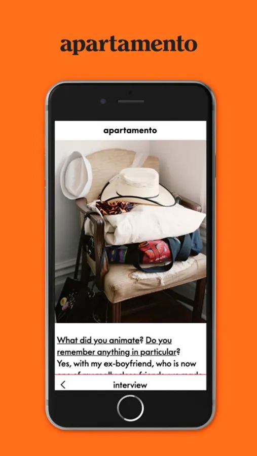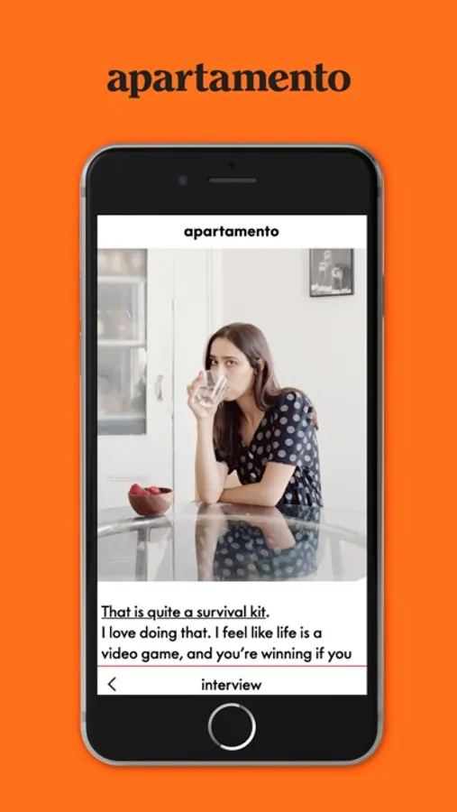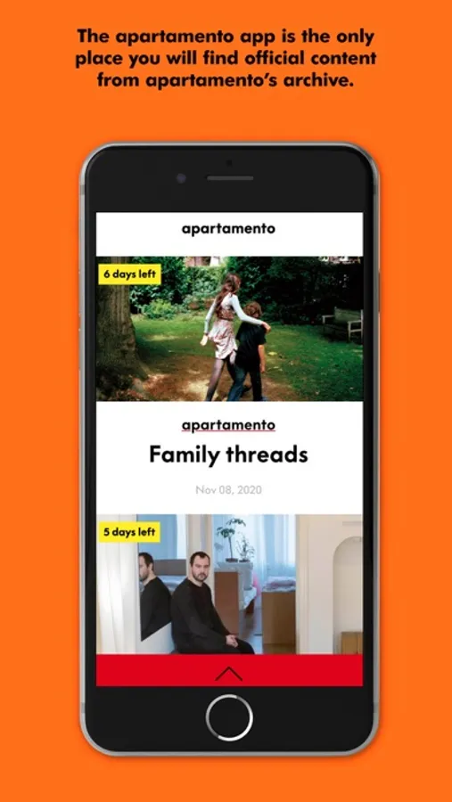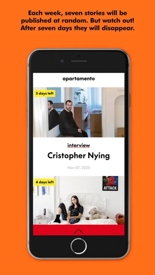 The Apartamento magazine app is the only place to find official content from apartamento magazine’s archive. Each week, seven stories from the entire apartamento archive will be published at random. You will have a time limit of seven days to access these stories before they are wiped from the app and replaced with seven more.