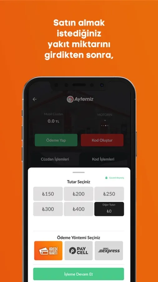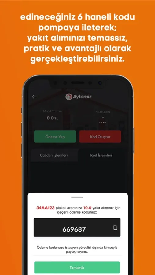 - 'Ödeme Sistemleri' menüsünde yer alan Mobil Ödeme hizmetimiz sayesinde yakıt alımlarınızı sadece bir kod ile gerçekleştirebilirsiniz. Dilerseniz Araçtan Öde hizmetimizle temassız özelliği olan Aytemiz Kart’ınıza dilediğiniz bankanın kredi kartını tanımlayarak aracınızın konforunda yakıt alımınızı gerçekleştirebilirsiniz.