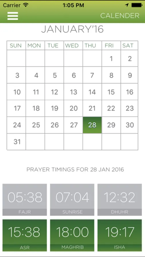 • Prayer Times: Using your location, the application displays prayer times (Fajr, Dhuhr, Asr, Maghrib,Isha)