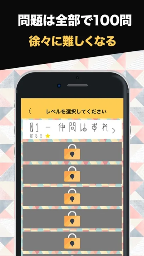 レベル1~100まであり、難しい問題~簡単な問題までご用意しております。