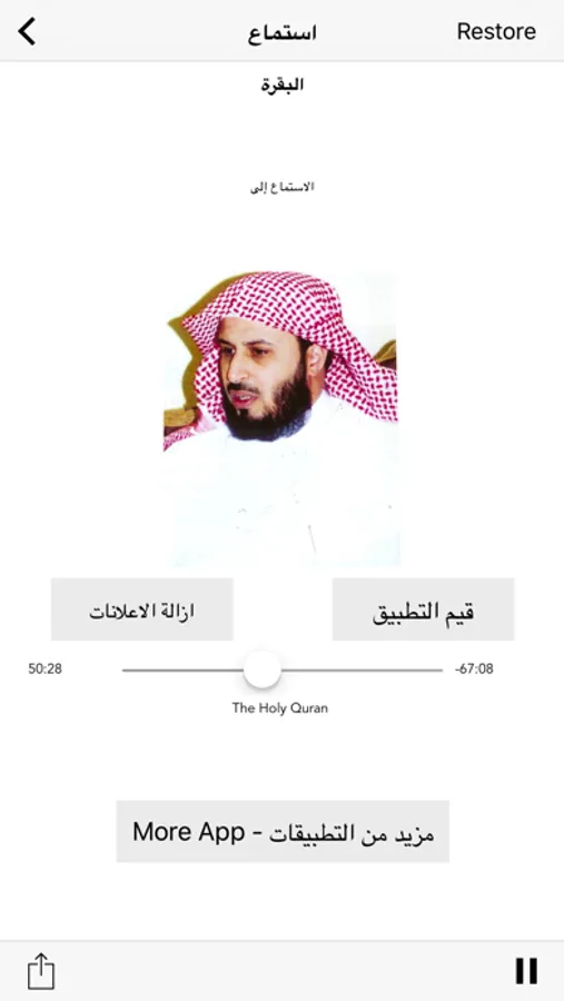 - امكانية الاستماع للسورة ومتابعة العمل على الجهاز في نفس الوقت