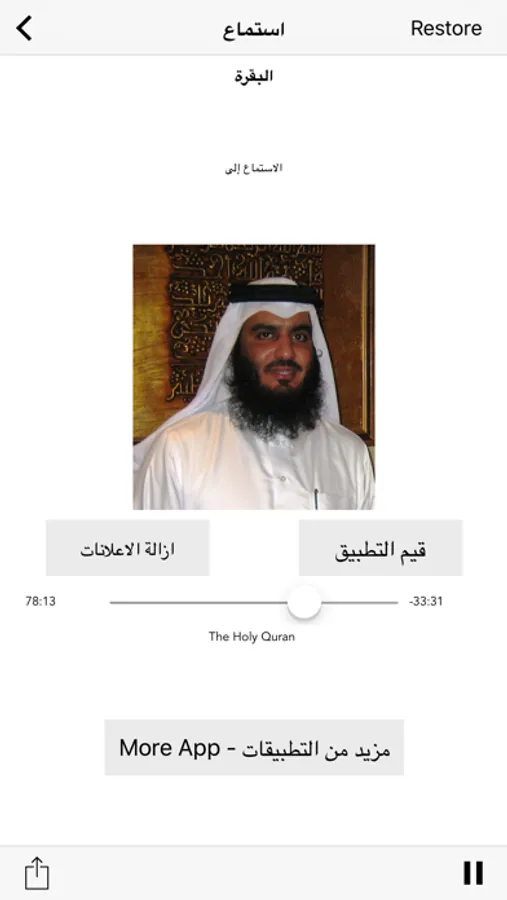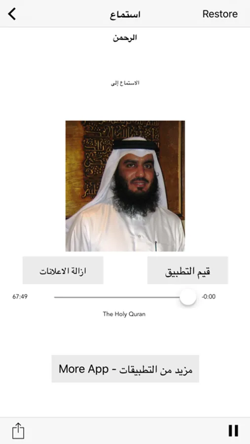 تستطيع من خلال هذا التطبيق الاستماع لتلاوة القران الكريم