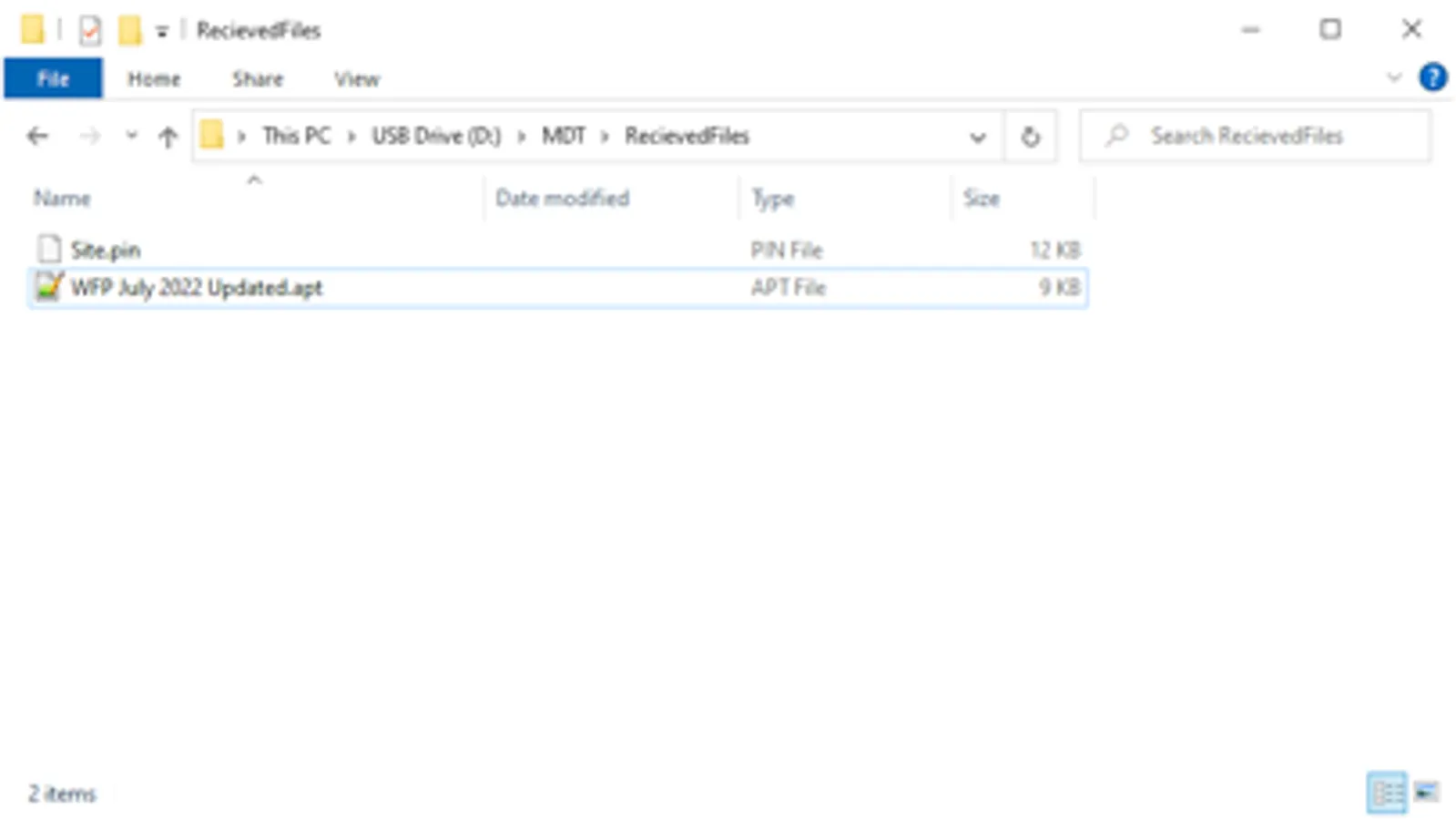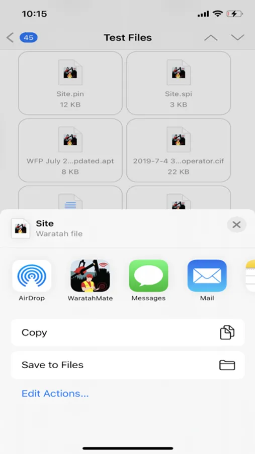 To send a file from your mobile device, simply tap on the file and select to share it with WaratahMate. If you are connected to the MDT via wifi or have a compatible USB drive attached to your device, the file will transfer automatically. Once transfer is complete, simply insert the USB drive into your PC (or unplug and reinsert the MDT) and open the files from the drive location (D:MDTReceivedFiles)