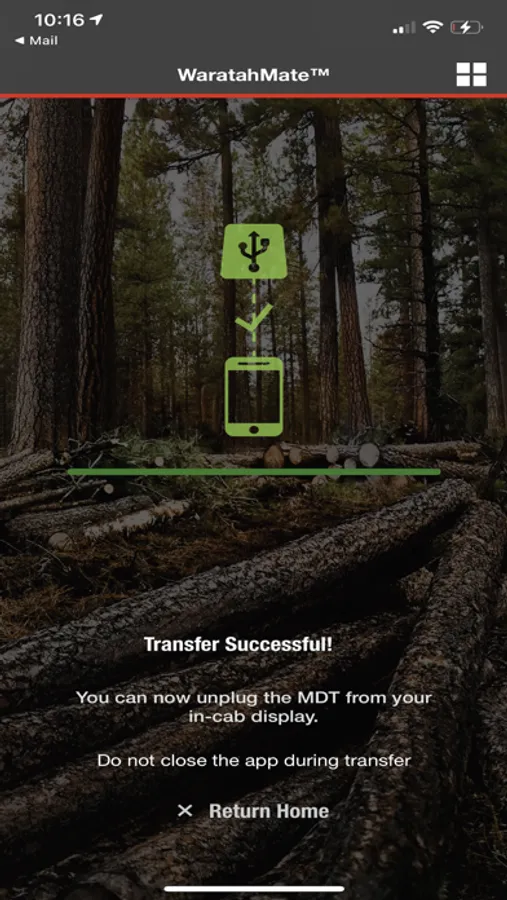 Developed exclusively for Waratah customers, the WaratahMate app transfers data directly from the TimberRite™ measuring and control system via WiFi to your phone. The app then reliably sends the data files through the cellular network to assigned email servers.