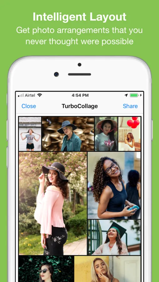 Built with a focus on ease of use, TurboCollage lets you combine photos into beautiful collages in 2 simple steps — select a size & select photos to use. With TurboCollage, you are not stuck with the same 2, 3, or 4 picture collages with fixed layouts. You can use as many pictures as you want and TurboCollage does the hard work of laying them out to an amazing collage that would surprise you and your friends for sure.
