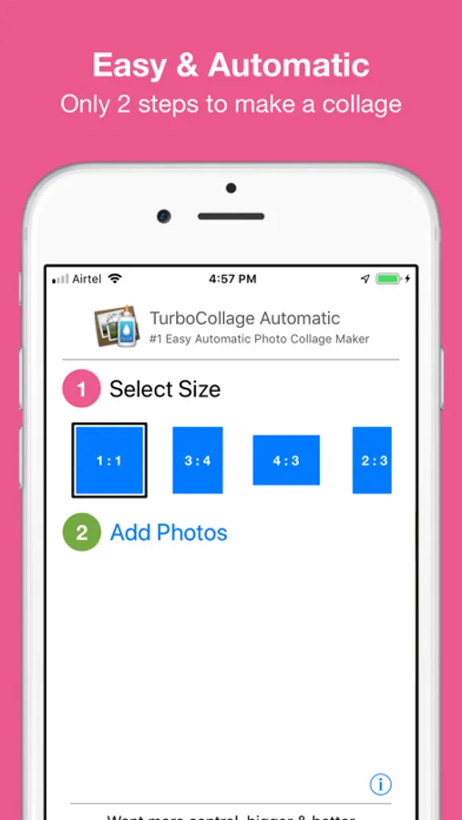 If you are looking for full manual control, bigger output photos, and more collage options, you should try our TurboCollage desktop apps available on www.TurboCollage.com.