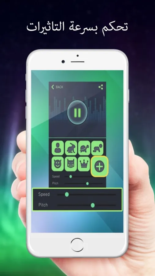 غير صوتك لصوت طفل صغير، لصوت مرأه، لصوت حيوان مخيف، ومع كل تاثير يمكنك التحكم في سرعة الصوت وخصائص الصوت.