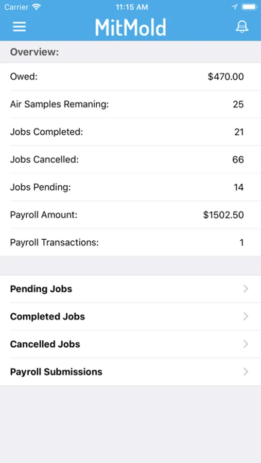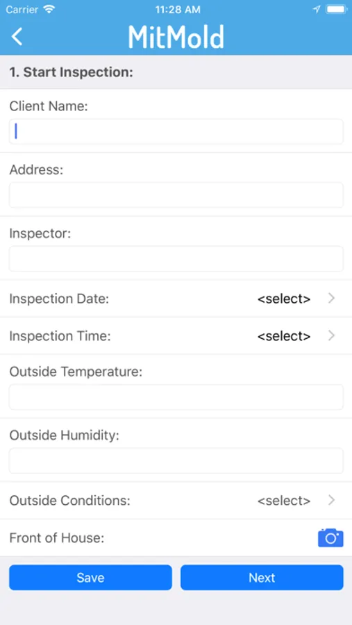 Application for MI&T Mold Inspectors to track clients, pay and create customer reports.