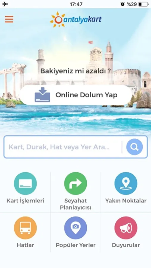 antalyakart'ınıza yükleme yapmak, bakiyesini sorgulamak, durağa yaklaşan otobüsleri görmek artık çok daha kolay! Hemde bunları sadece birkaç tık ile, tamamen kolay, hızlı ve güvenli bir biçimde gerçekleştirebilirsiniz.