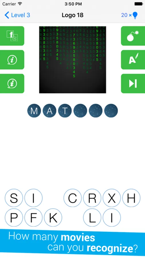 Playing is pretty simple: you see a film icon and you're shown a series of scrambled letters, out of which you have to guess the film title.