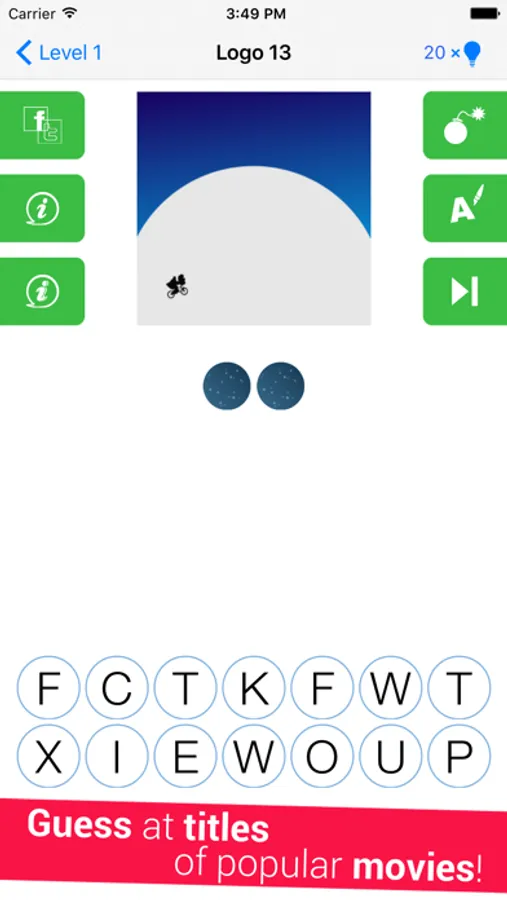 "Guess The Movie Quiz" is a free word game full of fun that consists on guessing the names of hundreds of movies.