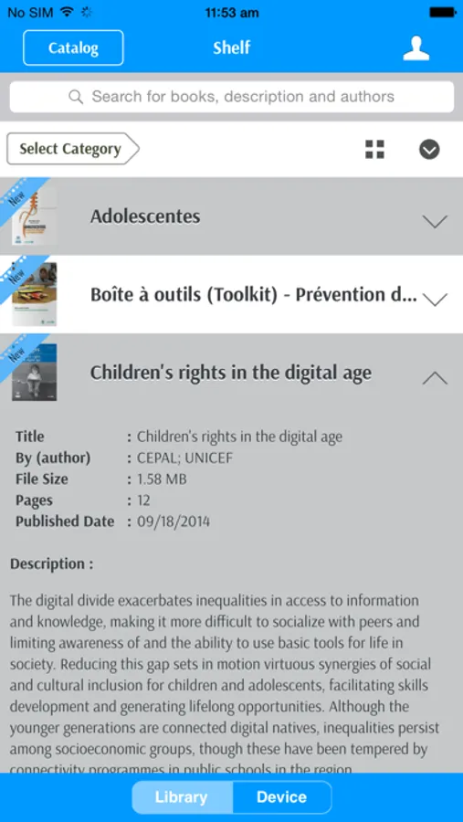 1. Select your eBook in the UNICEFLAC eBooks website