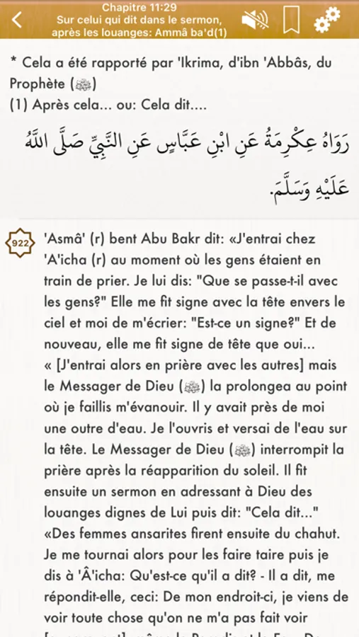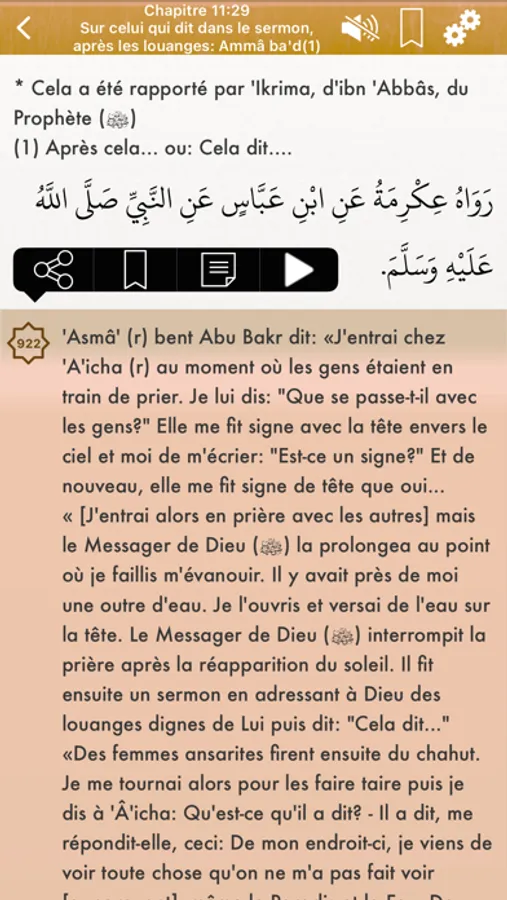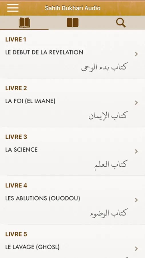 - Les 97 thématiques réparties sur plus de 4000 chapitres et sur plus de 7500 Hadiths au format texte et Audio.