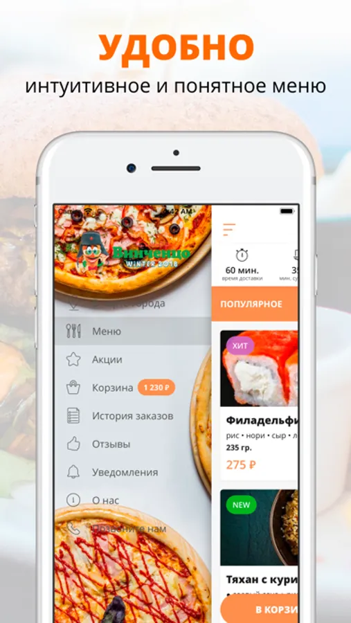 Уникальные зимние предложения: облепиховый чай с имбирем, горячий шоколад с маршмеллоу, вишневый глинтвейн, а так же долгожданная круглая пицца.