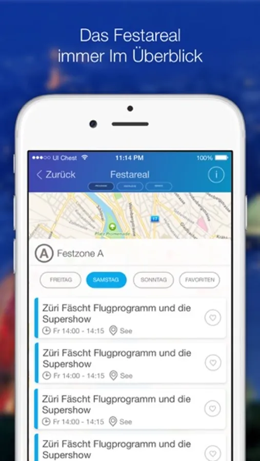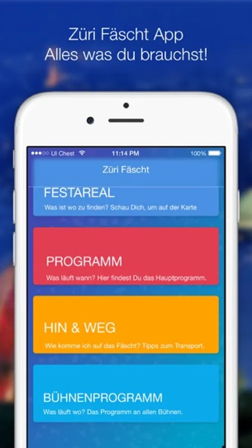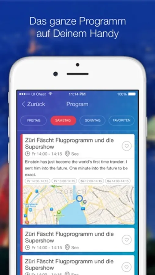 The Zurich Festival app informs you about the program with easy access to the map, it lets you playfully experience the Zurich Festival and keeps you up to date to recent news.