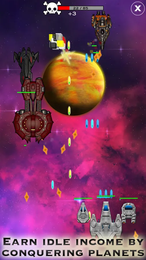 - Conquer increasingly defended planets to earn an idle gold income and stars for upgrades. Drag your finger to fire at enemies while avoiding their shots in this arcade style space shooter. Beware of the powerful bosses!