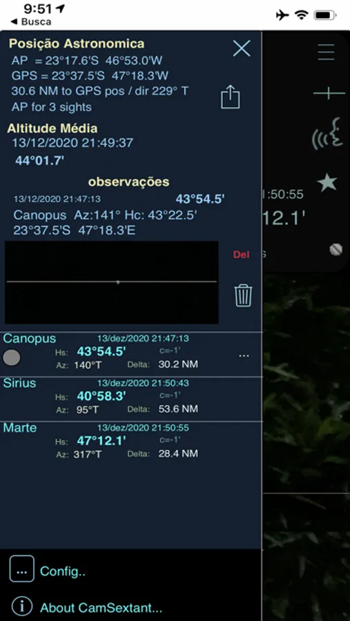 If you have a marine sextant at hand, you can edit the altitudes captured by the phone and get serious celestial navigation work done.