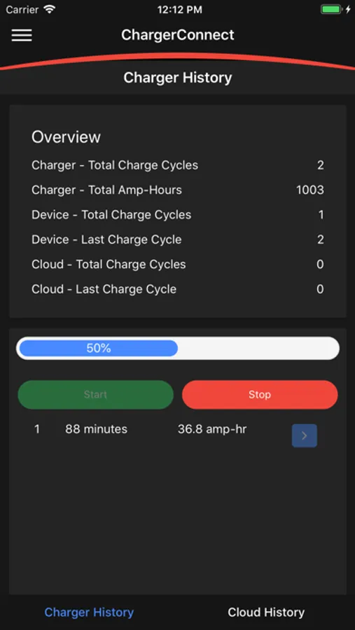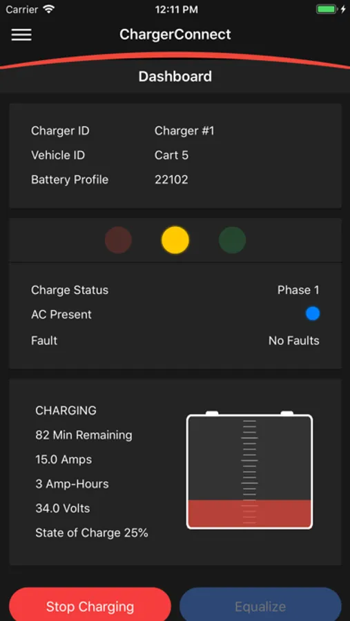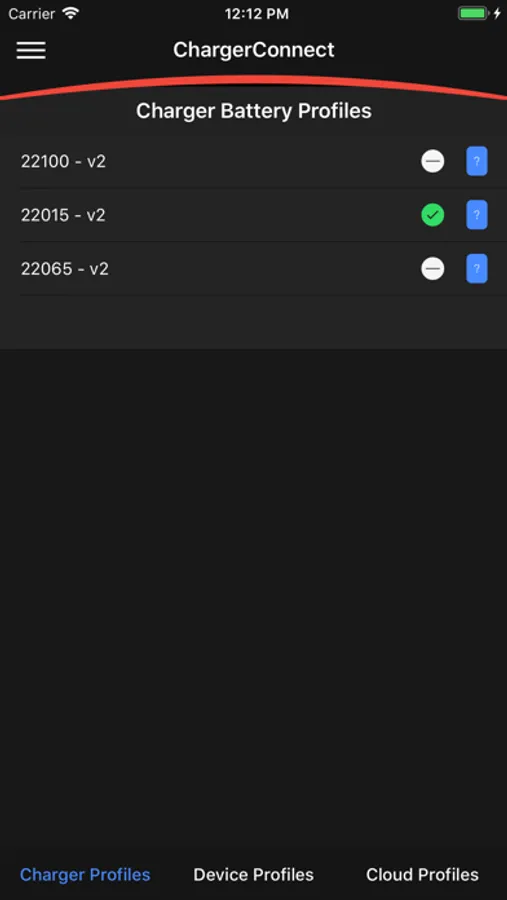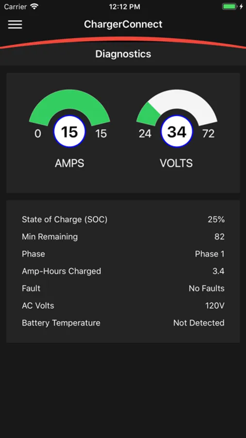 The Charger Connect application interfaces wirelessly with Summit II battery chargers over Bluetooth Smart.