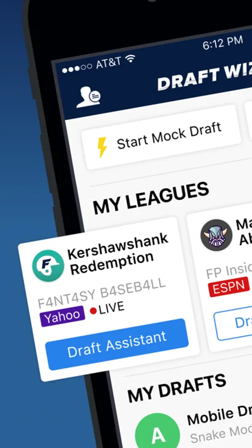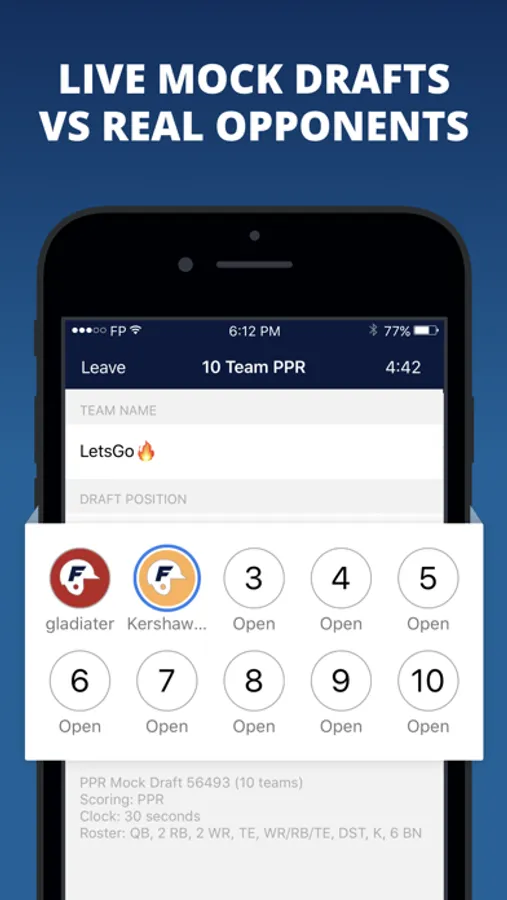 Mock draft against real LIVE opponents on-the-go, using settings from your league host.