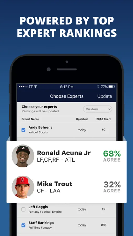 Created by FantasyPros, the #1 fantasy sports advice provider in the world, and powered by award-winning draft technology, this is the only app that will give you expert advice for every single pick and assist you during your real live draft.