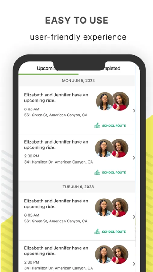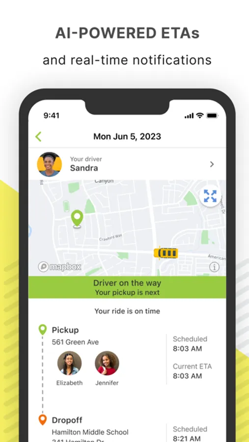 - Receive pickup and dropoff notifications