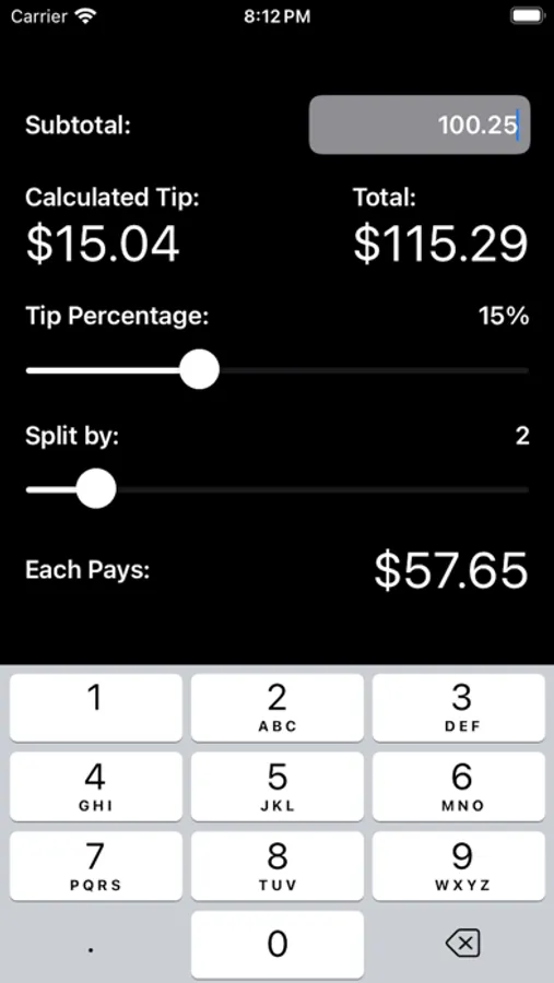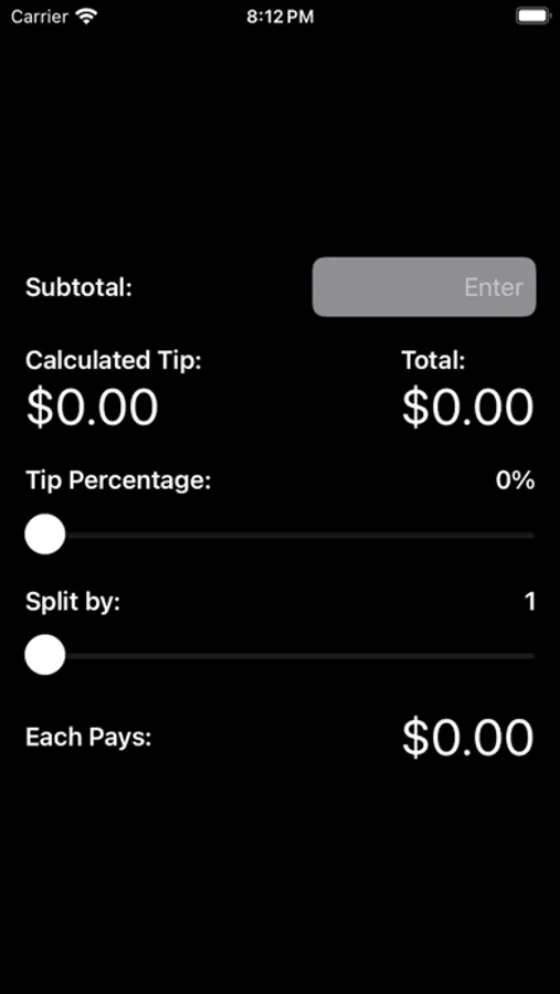 -Calculate Tip and Total using pre-defined sliders (0-45%)