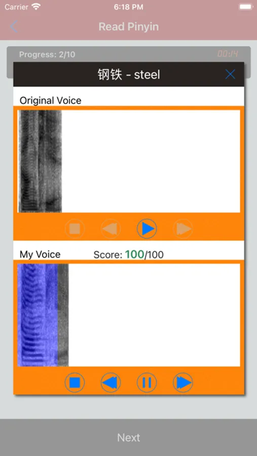 6. Provide exclusive physical voiceprint analysis of your sounds and the standard to help understand the essence of pronunciation.