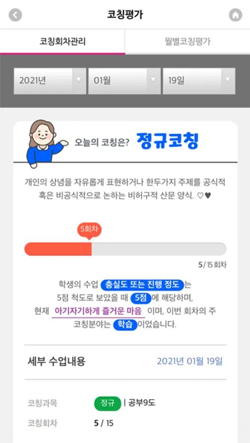 학생과 코치가 파트너가 되어 자신의 꿈과 비전을 찾고, 목표를 향해 높이(上) 더 높이(上) 올라가는 길에 함께할 것입니다. 지식만 채우는 것이 아니라 가슴에 불을 지필 수 있는 상상코칭과 함께하세요!