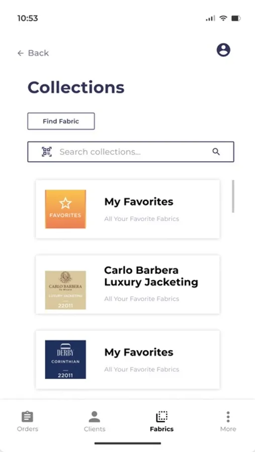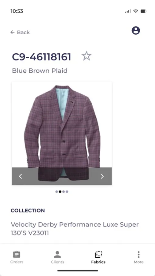 Our Fabrics section allows you to effortlessly review fabric availability at different production facilities and get more information about the chosen material. Whether searching for a collection, specific fabric or scanning the QR code on the back of a physical folder – we've got you covered! Plus, instantly discover what any fabric looks like when made up in its corresponding garment types - all right here!