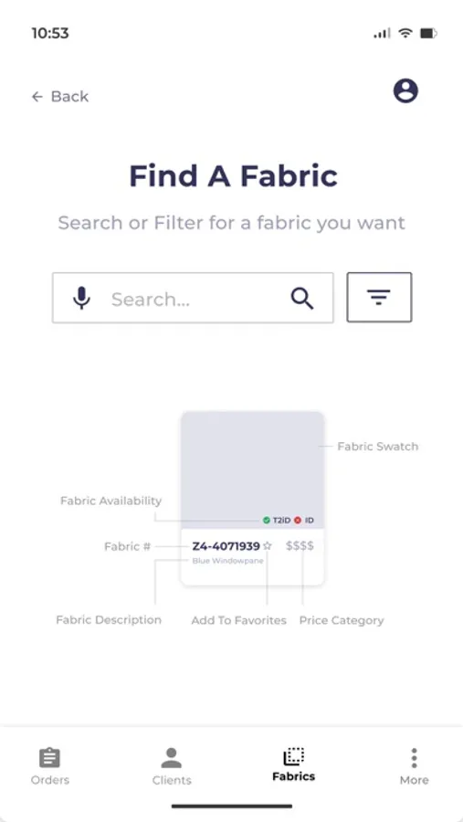 Get connected quickly and easily with the homepage search bar. Predictive text makes it simple to access customer, order, and fabric information – even if you don't have all of the details at your fingertips! Whether for yourself or a caller on speaker phone seeking an answer about their order in real time – take advantage of keyed-in convenience today.