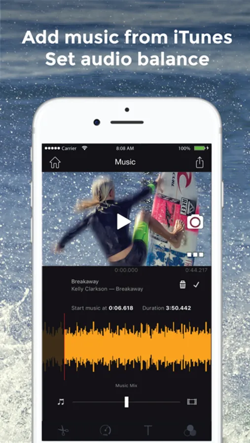 + Add music track from your own iTunes collection (subject to iTunes terms)