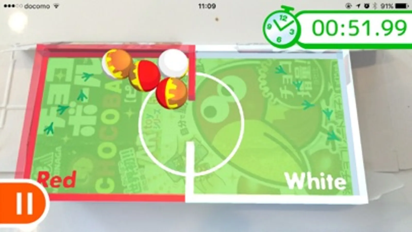 Scanning Chocoball package through the app, Kyorochan AR game will appear on the package.
