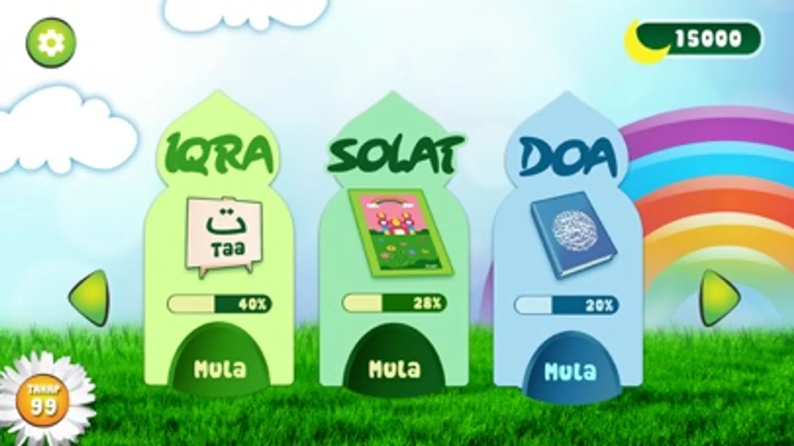 Dalam bahagian IQRA, terdapat beberapa pecahan untuk pembelajaran anak anak. Antaranya, belajar mengenali huruf dan nombor jawi, surah surah lazim dan permainan mini.
