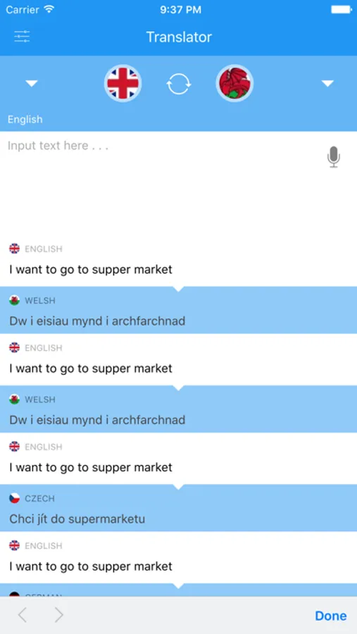 Please enter the text you want translated by writing or speaking. This application can translate your voice.